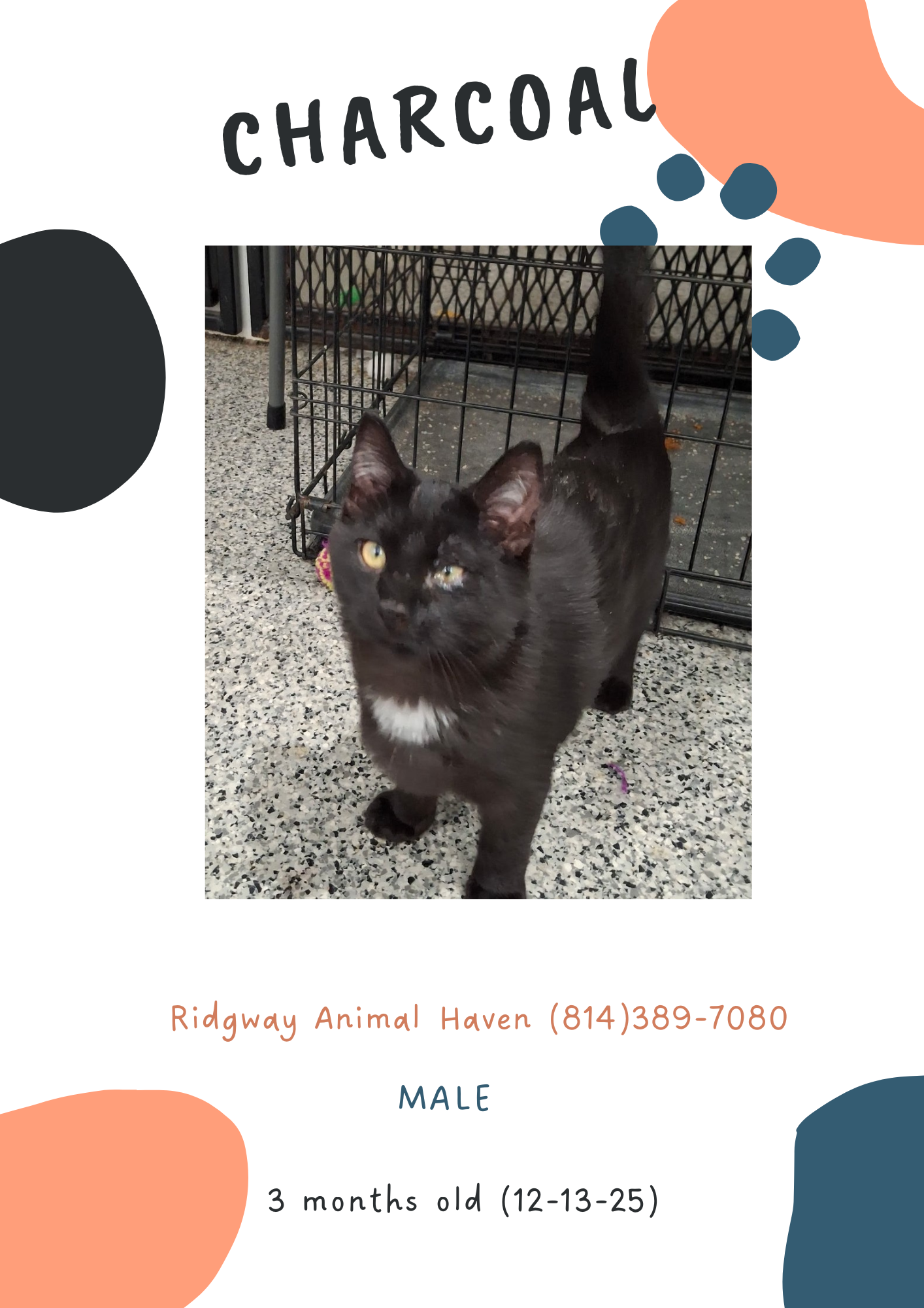Charcoal is an adventurous little guy. Hes full of curiosity, he loves to explore all the spaces here at the shelter