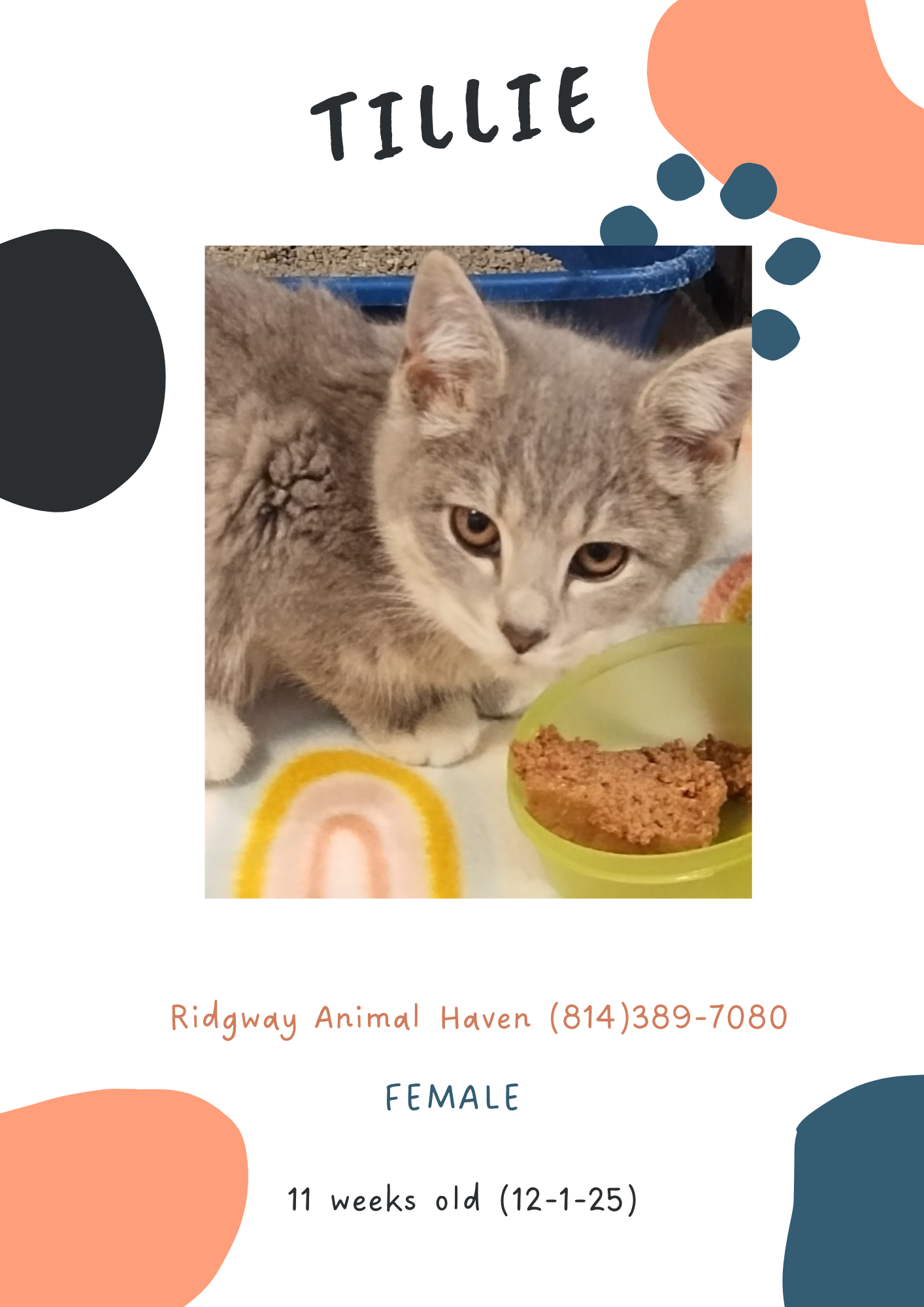 Tillie is playful, curious and affectionate.. Shes a little burst of energy, with a loving nature that will melt any ones heart.