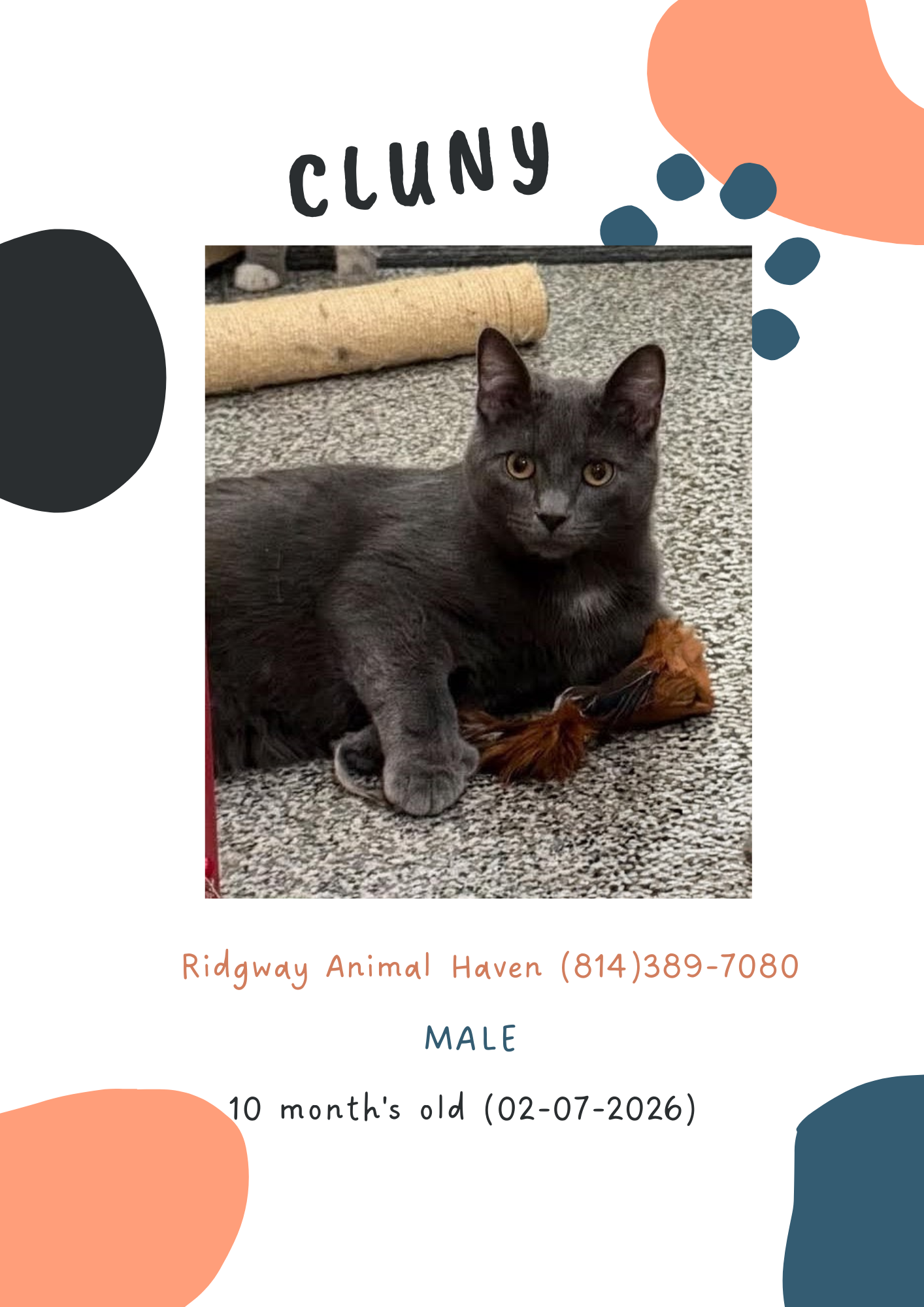 Cluny is a spunky young male, but he also loves to cuddle! The best of both worlds! he also has extra toes